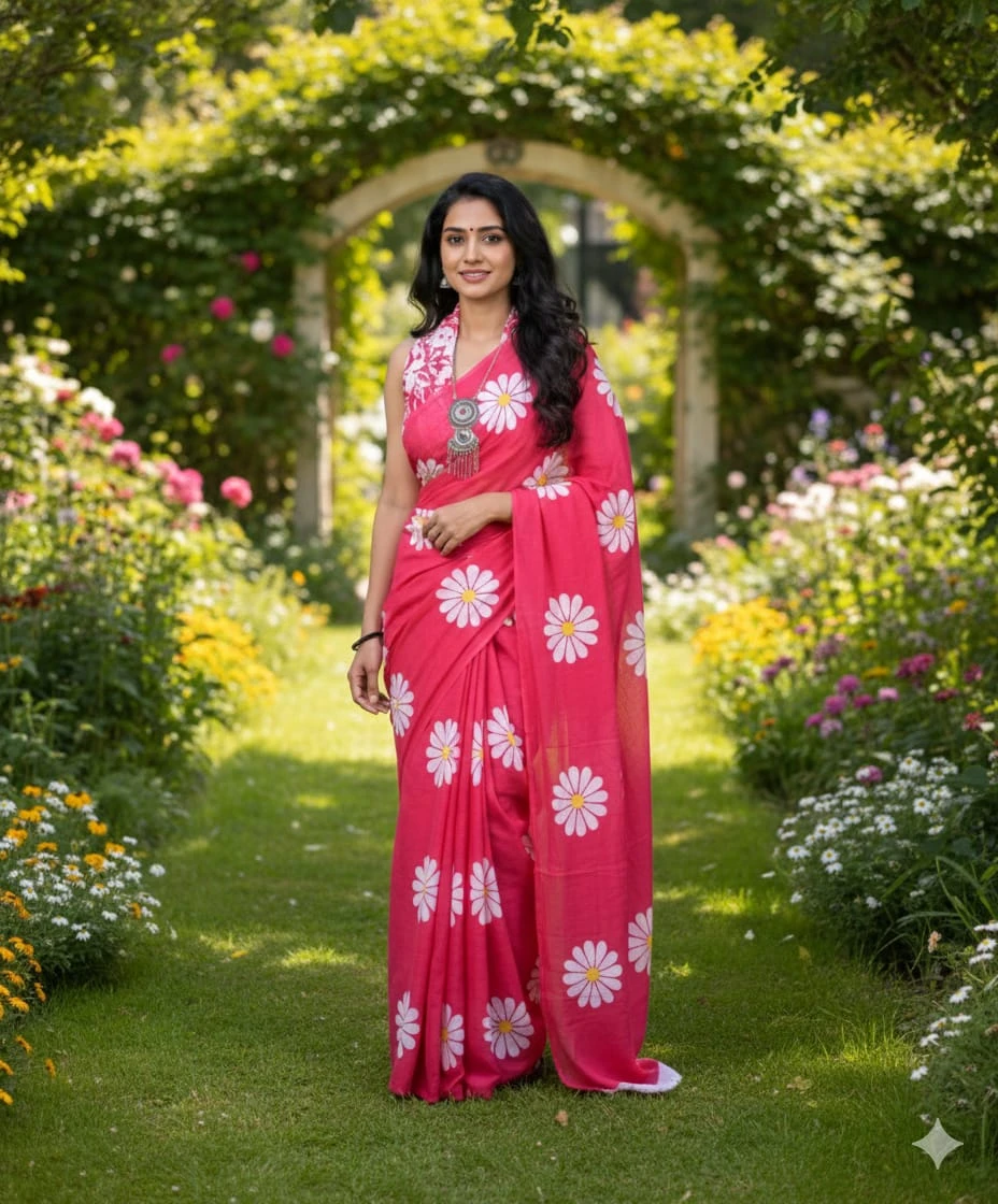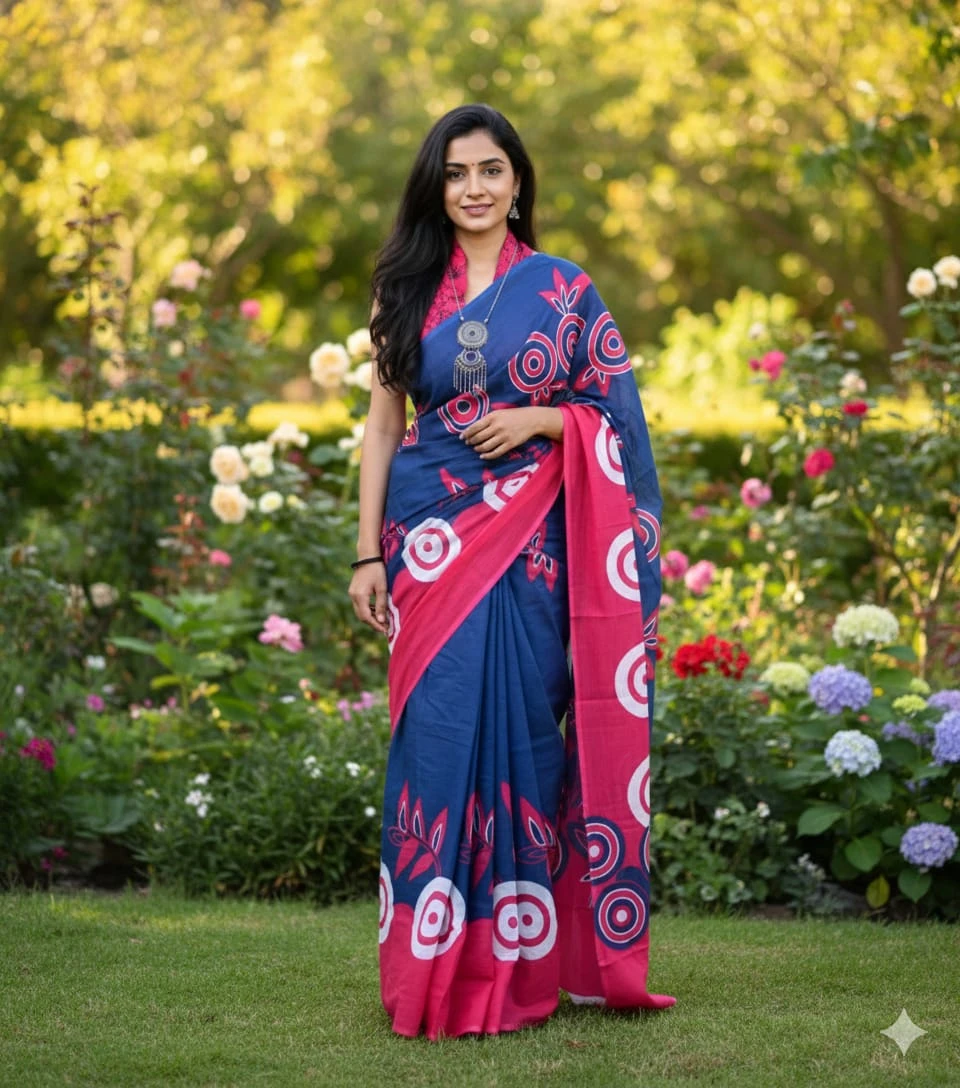 Made from soft and breathable Mulmul Cotton (92×80), this saree feels extremely light on the skin, making it perfect for daily wear, office, casual outings, and summer seasons. The saree comes with a matching blouse piece, carefully designed to complement the print and enhance the overall look.