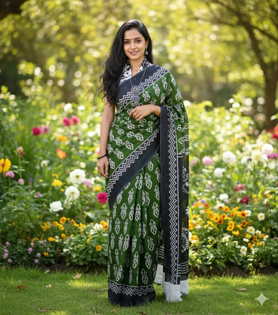 Bring home the charm of traditional craftsmanship with this Bagru Natural Hand Block Print Mulmul Cotton Saree, designed for women who love comfort with elegance. Crafted using age-old hand block printing techniques, each saree reflects authentic Indian artistry and natural beauty.